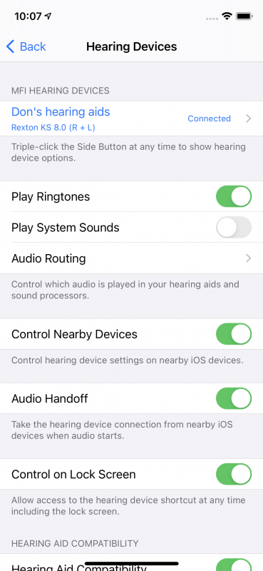 There are a number of other hearing device controls available, too, such as ringtones, audio handoff, and audio routing.