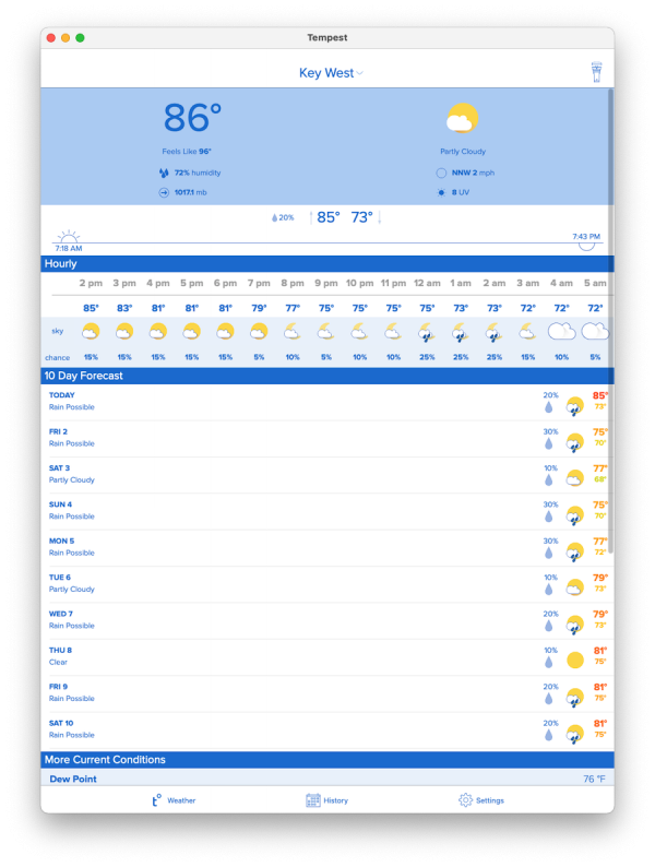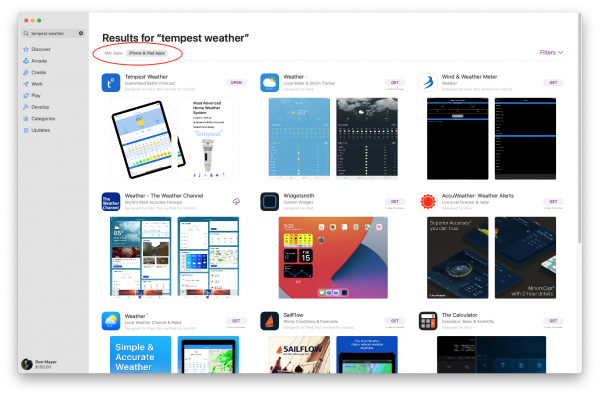 I am sort of a weather nut so I bought a couple Tempest weather stations when they were crowdfunding through Indiegogo I like to see the weather in Vermont when I am in Florida and vice versa. Tempest provides a great weather app and notifications so it was the first iPhone/iPad app I tried on my Mac. It works great and now is one of the apps I open automatically when logging in.