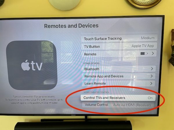 The new Siri Remote’s body is thicker, a little longer and heavier, and is made of silver aluminum. The touchpad at the top has been replaced by a click wheel in the style of the classic iPod, and the center button inside the wheel is still a clickable touchpad. Apple added some buttons that are very useful. There is a small power button on the top that will not only turn off your Apple TV but for my set-up it also turns off the TV and the Sonos speakers. If you’re having issues with the remote not controlling all the devices connected to your TV, then double-check you have the setting enabled by going to Settings > Remotes and Devices and scrolling down to the Home Theater Control section. Turn on Control TVs and Receivers and set Volume Control to Auto.