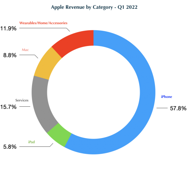 This amazing result compares with $111 billion last holiday quarter.   Apple’s earnings per share is $2.10 for the quarter, up from $1.68 in the Q1 2021 results.Apple set all-time quarterly revenue records for the iPhone, Mac, Wearables, and Services: