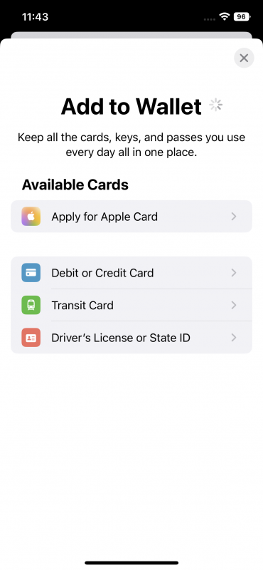 - If you have a paired Apple Watch, you have the option to also add the card to your watch.